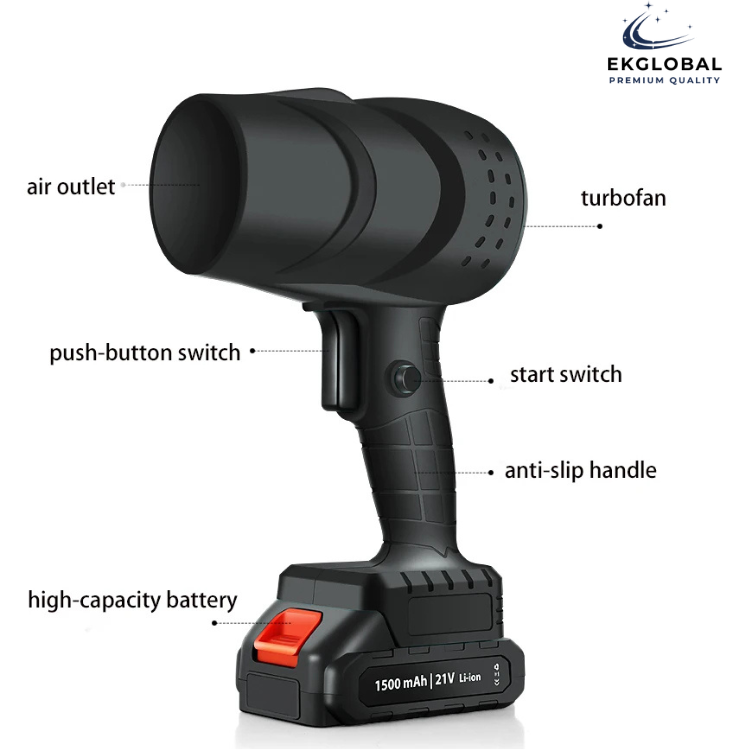 Utilise un principe similaire aux moteurs à réaction pour produire une vitesse d’air élevée et une force de soufflage exceptionnelle.