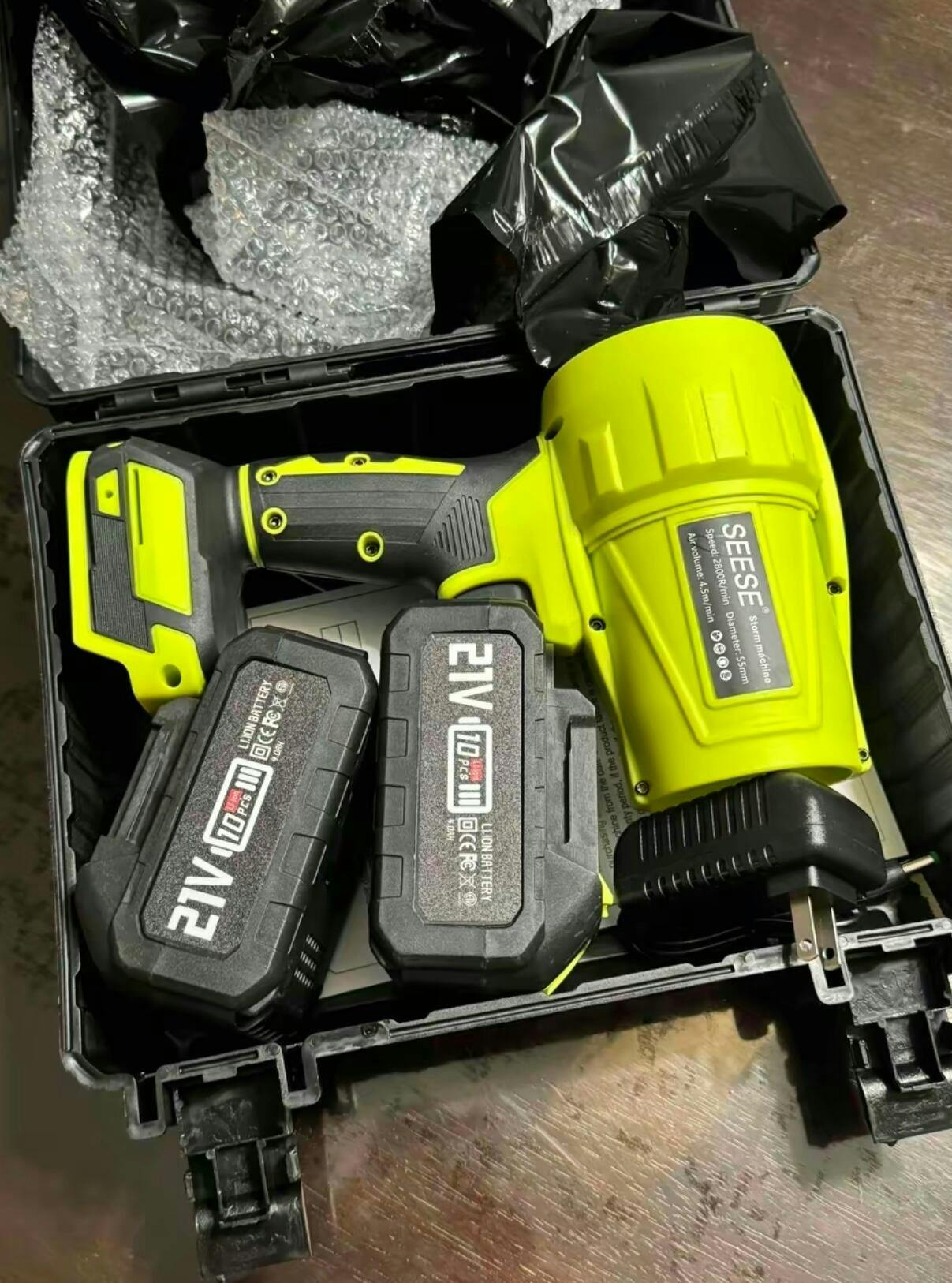 2 × batteries lithium 21V / 1000mAh ou 1500mAh ou 7500mAh selon le modèle pour une autonomie longue durée. Chargeur EU inclus pour une recharge facile.